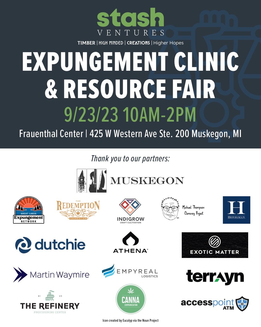 Muskegon will be hosting an Expungement Clinic and Resource Fair September 23, 2023 from 10:00am to 2:00pm at the Frauenthal Central | 425 Western Ave Ste. 200 Muskegon, MI