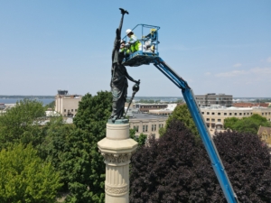 As part of the project, City staff will also be trained in the appropriate techniques needed to clean and wax the bronze sculptures in the future on a scheduled and routine basis. Work began at Hackley Park this week, and the project will wrap up in about 2-3 weeks, eventually shifting to Kearny Memorial.