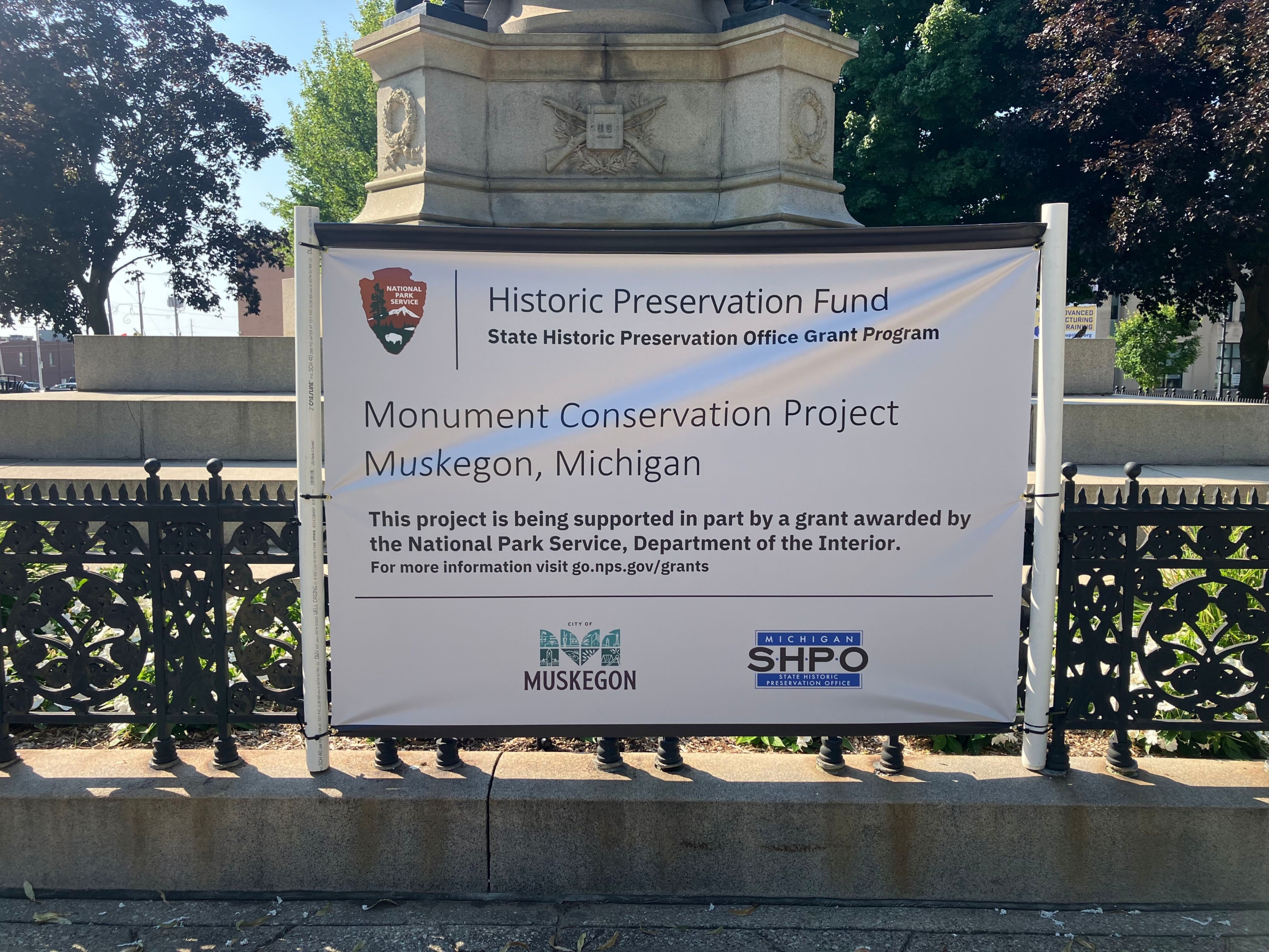 The City of Muskegon has contracted with The Tradesmen Group to complete much needed professional conservation work to the five, historic bronze and granite monuments at Hackley Park (1892-1900), the President William McKinley monument (1902) across Webster Avenue from the park, and the General Philip Kearny monument (1901) at Terrace and Peck Streets. This project is being supported in part by a grant awarded by the National Park Service, Department of the Interior as well as through a generous donation from Patrick O’Leary, the chairman of the board of SPX, formerly known as Sealed Power, that established the City of Muskegon’s Public Art Maintenance Fund.